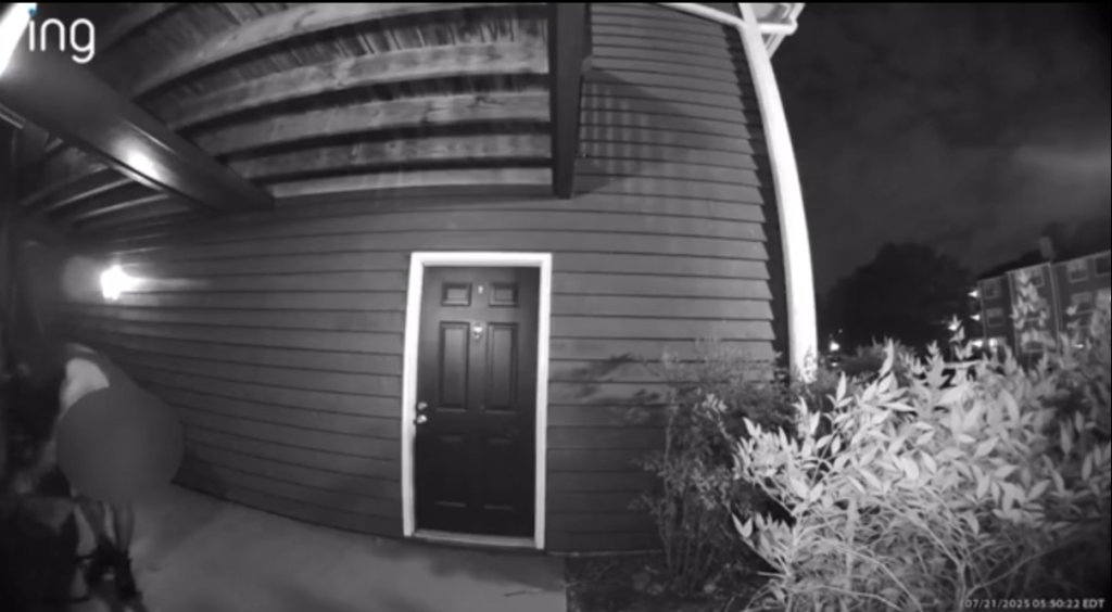 Police discovered a prior report at the same location involving a similar incident that was also captured on Ring video. After that earlier encounter, Nevins had been barred from the property.